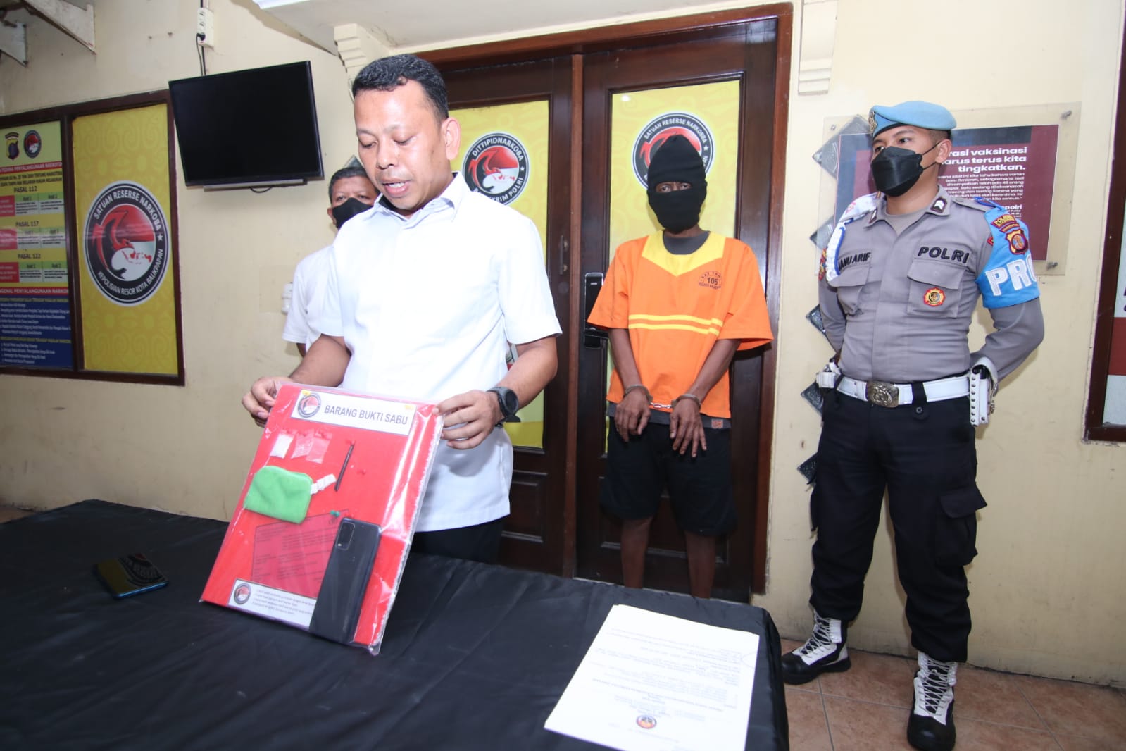 Petugas melakukan pengintaian selama beberapa hari sebelum akhirnya berhasil membekuk pelaku di rumah kontrakannya. Saat dilakukan penggeledahan, ditemukan 11 paket sabu yang sudah dikemas rapi untuk dijual. Selain itu, polisi juga mengamankan timbangan digital, plastik klip, dan telepon genggam yang diduga digunakan sebagai alat transaksi.
